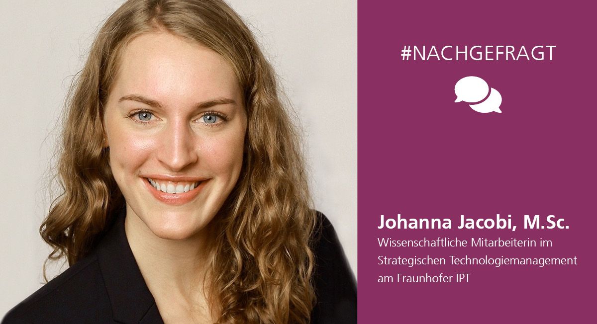 Was zeichnet die Aufgaben von wissenschaftlichen Mitarbeitenden im Technologiemanagement aus? Warum ist das Fraunhofer IPT der passende Arbeitgeber während der Promotion in diesem Bereich? Und welche Karrieretipps helfen Newcomern beim Einstieg in den Job? Diese und einige weitere Fragen beantwortet uns Johanna Jacobi in unserer neuen Career Story.