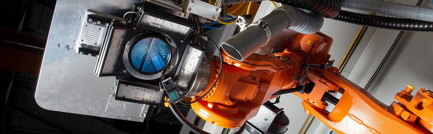 Innerhalb des Projekts »GroRoLas3D« wurde daher die roboterbasierte Technologie weiter erforscht und die bisherige Systemlösung für den automatisierten Einsatz in der industriellen Produktion weiterentwickelt. Dazu wurden zunächst intelligente, softwarebasierte Algorithmen zur Kompensation der störenden Reflexionssignale in Kombination mit einer adaptierten Polarisationsbeleuchtung entwickelt und in die bestehende Softwarelösung implementiert. Um die optische Bildqualität weiter zu steigern, wurde zudem das Kamerasystem des Strahlführungssystems modifiziert. Zeitgleich wurden Prozessuntersuchungen zum Einsatz neuer Markierungen und Referenzierungsstrategien durchgeführt, um den roboterbasierten Laserstrukturierungsprozess robuster und gleichzeitig schneller zu machen.