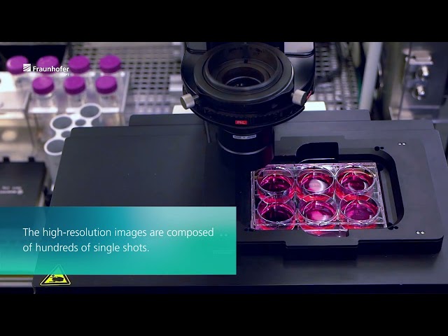 With High-Speed-Microscopy, large-area objects can be acquired in a very short time on a microscopic scale. In industries such as semiconductors, electronics and biology, the demand for microscopic inspection methods is particularly high, as the increasing inspection of large surfaces requires an ever faster acquisition process. Although the process is already around 30 times faster than comparable stop-and-go methods, the Fraunhofer IPT is working on accelerating the recording process even further. To this end, in addition to constantly improving the software, new components are regularly integrated, such as flash illumination, sensor technology for the hardware autofocus system and camera technology.